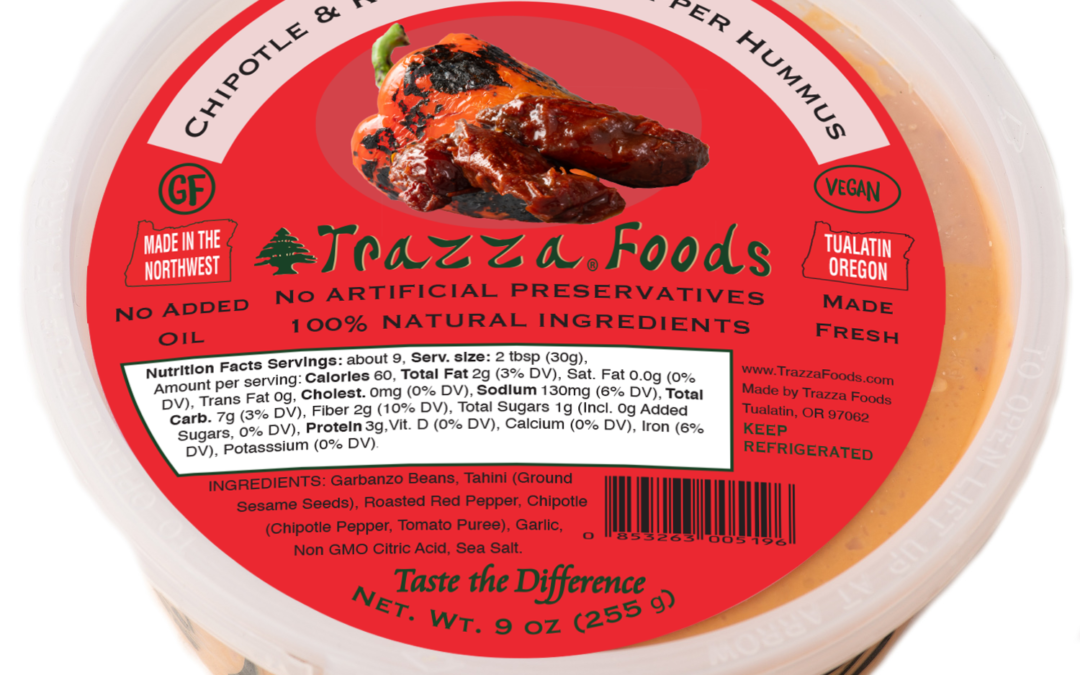 Garbanzo Beans, Tahini (Ground Sesame), Roasted Red Pepper, Chipotle (Chipotle Pepper, Tomato Purée, Vinegar), Garlic, Non-GMO Citric Acid, Sea Salt