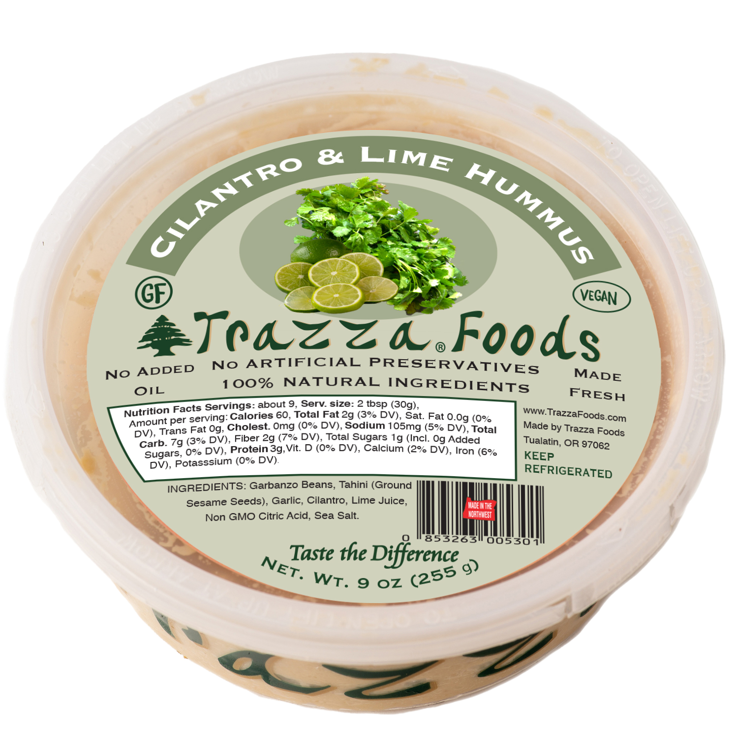 - 10 oz Trazza Baba Ganoush or Trazza Cilantro Lime Hummus